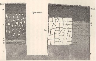 dark earth full of stones, 13 inches in thickness; C, black mould; D,