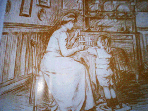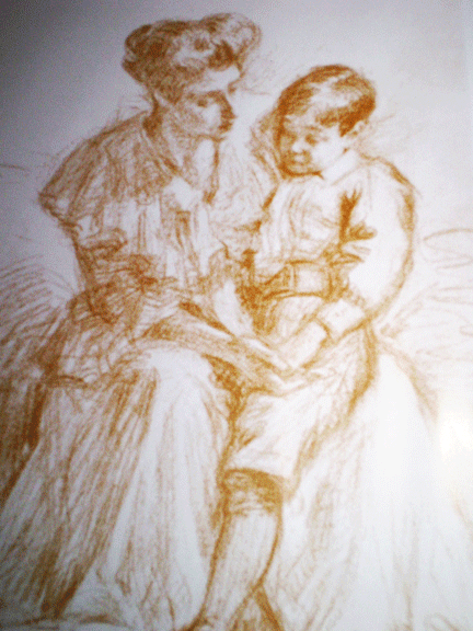 In 1914, Mirra and Paul Richard came to Pondicherry where on 29 March at 3.30 in the afternoon, she met Sri Aurobindo at 41 Rue Francois Martin. Immediately she recognized him as the “Krishna” whom she had seen in her visions. Later she recounted the experience of the first meeting: “Something in me wanted to meet Sri Aurobindo all alone the first time. Richard went to him in the morning and I had an appointment in the afternoon. He was living in the old Guest House. I climbed the staircase and he was standing there, waiting for me at the top of the stairs: exactly my vision! Dressed the same way, in the same position, in profile, his head held high. He turned his head towards me and I saw in his eyes that it was He.” On the very next day, Mirra wrote in her diary:” It matters little that there are thousands of beings plunged in the densest ignorance. He whom we saw yesterday is on Earth; his presence is enough to prove that a day will come when darkness shall be transformed into light, and Thy reign shall indeed be established upon Earth.” [20] The Richards left Pondicherry on 22 February 1915 and arrived in Paris on 18 March; eleven days later, they travelled to Lunel where Paul Richard was summoned as a reservist. After he was freed from military service due to medical reasons, the Richards settled at Marsillargues. Andre used to stay with them during his school holidays in July and August. It was then that he heard of Sri Aurobindo and his Integral Yoga. He also learnt to play chess with Paul Richard during that period. Here are two portraits of the Mother with Child André _______________ Notes: [1] Pournaprema: A Unique Little Girl,