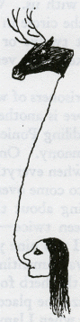 Even while we were singing thus, the heyokas were doing foolish things and making laughter. For instance, two heyokas with long crooked bows and arrows painted in a funny way, would come to a little shallow puddle of water. They would act as though they thought it was a wide, deep river that they had to cross; so, making motions, but saying nothing, they would decide to see how deep the river was. Taking their long crooked arrows, they would thrust these into the water, not downwards, but flat-wise just under the surface. This would make the whole arrow wet. Standing the arrows up beside them, they would show that the water was far over their heads in depth, so they would get ready to swim. One would then plunge into the shallow puddle head first, getting his face in the mud and fighting the water wildly as though he were drowning. Then the other one would plunge in to save his comrade, and there would be more funny antics in the water to make the people laugh. After One Side and I had sung to the west, we faced the pot, where the heart and the head of the dog had been boiling. With sharp pointed arrows, we charged on horseback upon the pot and past it. I had to catch the head upon my arrow and One Side had to catch the heart, for we were representing the two men I had seen in the vision. After we had done this, the heyokas all chased us, trying to get a piece of the meat, and the people rushed to the pot, trying to get a piece of the sacred flesh. Ever so little of it would be good for them, for the power of the west was in it now. It was like giving them medicine to make them happier and stronger. When the ceremony was over, everybody felt a great deal better, for it had been a day of fun. They were better able now to see the greenness of the world, the wideness of the sacred day, the colors of the earth, and to set these in their minds. The Six Grandfathers have placed in this world many things, all of which should be happy. Every little thing is sent for something, and in that thing there should be happiness and the power to make happy. Like the grasses showing tender faces to each other, thus we should do, for this was the wish of the Grandfathers of the World. AFTER the heyoka ceremony, I came to live 11here where I am now between Wounded Knee Creek and Grass Creek. Others came too, and we made these little gray houses of logs that you see, and they are square. It is a bad way to live, for there can be no power in a square. You have noticed that everything an Indian does is in a circle, and that' is because the Power of the World always works in circles, and everything tries to be round. In the old days when we were a strong and happy people, all our power came to us from the sacred hoop of the nation, and so long as the hoop was unbroken, the people flourished. The flowering tree was the living center of the hoop, and the circle of the four quarters nourished it. The east gave peace and light, the south gave warmth, the west gave rain, and the north with its cold and mighty wind gave strength and endurance. This knowledge came to us from the outer world with our religion. Everything the Power of the World does is done in a circle. The sky is round, and I have heard that the earth is round like a ball, and so are all the stars. The wind, in its greatest power, whirls. Birds make their nests in circles, for theirs is the same religion as ours. The sun comes forth and goes down again in a circle. The moon does the same, and both are round. AN INDIAN WAY OF WRITING A NAME. IT INDICATES BLACK ELK. Even the seasons form a great circle in their changing, and always come back again to where they were. The life of a man is a circle from childhood to childhood, and so it is in everything where power moves. Our tepees were round like the nests of birds, and these were always set in a circle, the nation's hoop, a nest of many nests, where the Great Spirit meant for us to hatch our children. But the Wasichus have put us in these square boxes. Our power is gone and we are dying, for the power is not in us any more. You can look at our boys and see how it is with us. When we were living by the power of the circle in the way we should, boys were men at twelve or thirteen years of age. But now it takes them very much longer to mature. Well, it is as it is. We are prisoners of war while we are waiting here. But there is another world. It was in the Moon of Shedding Ponies (May) when we had the heyoka ceremony. One day in the Moon of Fatness (June), when everything was blooming, I invited One Side to come over and eat with me. I had been thinking about the four-rayed herb that I had now seen twice -- the first time in the great vision when I was nine years old, and the second time when I was lamenting on the hill. I knew that I must have this herb for curing, and I thought I could recognize the place where I had seen it growing that night when I lamented. After One Side and I had eaten, I told him there was a herb I must find, and I wanted him to help me hunt for it. Of course I did not tell him I had seen it in a vision. He was willing to help, so we got on our horses and rode over to Grass Creek. Nobody was living over there. We came to the top of a high hill above the creek, and there we got off our horses and sat down, for I felt that we were close to where I saw the herb growing in my vision of the dog. We sat there awhile singing together some heyoka songs. Then I began to sing alone a song I had heard in my first great vision: