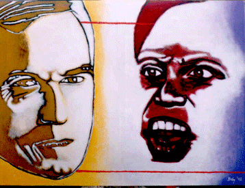 X 48" , Acrylic on Canvas , 2002 McKinney losing her seat in Congress may very well have come down to her pressing for an investigation into the Bush's Administration's links to 9-11. McKinney wanted to know how much of a role our reliance on imported oil played in the military policies being put forward by the Bush Administration. She wanted to know what role the close relationship between the Bush Administration and the oil and defense industries played in Bush administration policy decisions. Most importantly, McKinney wanted to know why Bush's Administration remained steadfast in its opposition to an investigation into the biggest terrorism attack upon our nation. Are we seeing shades of FBI Agent Richard Taus? McKinney pressed for an investigation into the President's father's relationship, through the Carlyle Group, with joint business interests with the bin Laden construction company and many defense industry holdings, the stocks of which, soared after September 11. George W. Bush told the American public that ties between 911 mastermind Osama bin Laden and Sadam Hussein - and WMD - were behind implementation of Operation Iraqi Freedom. James A. Baker was George H's Administration's Secretary of State. Baker's law firm represented George W. during his legal battle with Al Gore in the Florida state vote fraud debacle. Baker is Senior Counselor for Carlyle and it is noteworthy that Mr. Baker's law firm is representing the Royal Saud family in their defense of civil law suits filed by the survivors and heirs of those killed or injured in 911. The lawsuit names the suspected financiers of 911, including Osama bin Laden. So the American Public is to understand now that Baker's firm is defending co-defendants of Osama bin Laden? While Khaled Elgindy was employed as Congresswoman