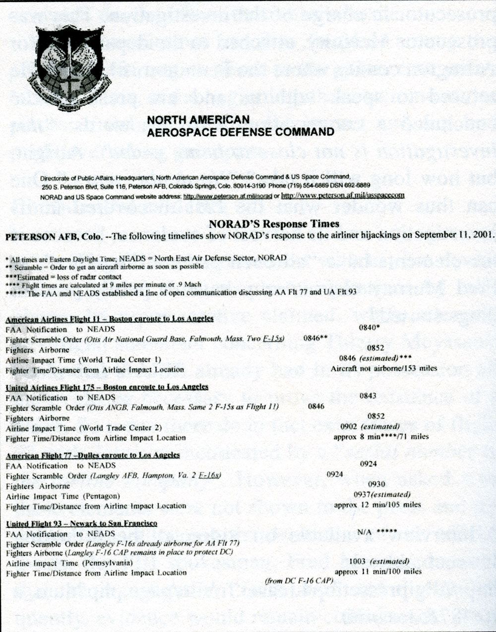 PUBLIC AFFAIRS, NORTH AMERICAN AEROSPACE DEFENSE COMMAND, NORAD’s Response Times