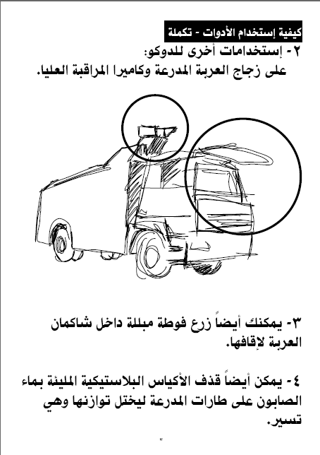 wheels of the armored trucks to disrupt their balance as they're moving.