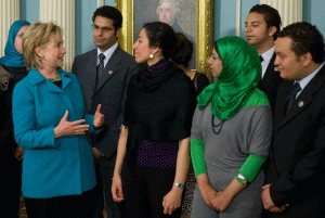 Political Double Talk: Chatting with "Dictators," Mingling with "Dissidents" The Egyptian pro-democracy delegation to the State Department was described by Condoleezza Rice as "The Hope for the Future of Egypt". In May 2009, Hillary Clinton met a delegation of Egyptian dissidents, several of which had met Condoleezza Rice a year earlier. These high level meetings were held a week prior to Obama's visit to Egypt: