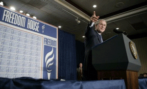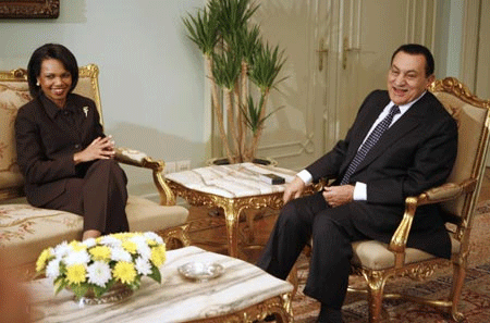 While the US has supported the Mubarak government for the last thirty years, US foundations with ties to the US State department and the Pentagon have actively supported the political opposition including the civil society movement. According to Freedom House: "Egyptian civil society is both vibrant and constrained. There are hundreds of non-governmental organizations devoted to expanding civil and political rights in the country, operating in a highly regulated environment." (Freedom House Press Releases). In a bitter irony, Washington supports the Mubarak dictatorship, including its atrocities, while also backing and financing its detractors, through the activities of FH, the NED, among others. Under the auspices of Freedom House, Egyptian dissidents and opponents of Hosni Mubarak were received in May 2008 by Condoleezza Rice at the State Department and the US Congress. They also met White House National Security Adviser Stephen Hadley, who was "the principal White House foreign policy adviser" during George W. Bush's second term.