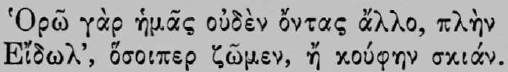 8. "I see that we who are alive are nothing but deceptive forms and a fleeting shadow-picture." [Tr.]