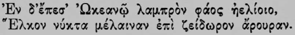 Finally, of this kind is an old German genealogical tree on which the last descendant of a very ancient family expressed the determination to live his life to the end in complete continence and chastity, and thus to let his race die out. This he did by depicting himself at the root of the tree of many branches, clipping it above himself with a pair of shears. In general, the above-mentioned symbols, usually called emblems, which might also be described as short painted fables with an expressed moral, belong to this class. Allegories of this kind are always to be reckoned among the poetical and not the pictorial, and as being justified in precisely this way. Here the pictorial execution also is always a matter of secondary importance, and no more is demanded of it than that it depict the thing conspicuously. But in poetry, as in plastic and pictorial art, the allegory passes over into the symbol, if there is none but an arbitrary connexion between what is presented in perception and what is expressed by this in the abstract. Since everything symbolical rests at bottom on a stipulated agreement, the symbol has this disadvantage among others, that its significance is forgotten in the course of time, and it then becomes dumb. Indeed, who would guess why the fish is the symbol of Christianity, if he did not know? Only a Champollion, for it is a phonetic hieroglyphic through and through. Therefore as a poetical allegory the Revelation of John stands roughly in the same position as the reliefs with Magnus Deus sol Mithra, which are still always being explained. [39] 51. If with the foregoing observations on art in general we turn from the plastic and pictorial arts to poetry, we shall have no doubt that its aim is also to reveal the Ideas, the grades of the will's objectification, and to communicate them to the hearer with that distinctness and vividness in which they were apprehended by the poetical mind. Ideas are essentially perceptive; therefore, if in poetry only abstract concepts are directly communicated by words, yet it is obviously the intention to let the hearer perceive the Ideas of life in the representatives of these concepts; and this can take place only by the assistance of his own imagination. But in order to set this imagination in motion in accordance with the end in view, the abstract concepts that are the direct material of poetry, as of the driest prose, must be so arranged that their spheres intersect one another, so that none can continue in its abstract universality, but instead of it a perceptive representative appears before the imagination, and this is then modified further and further by the words of the poet according to his intention. Just as the chemist obtains solid precipitates by combining perfectly clear and transparent fluids, so does the poet know how to precipitate, as it were, the concrete, the individual, the representation of perception, out of the abstract, transparent universality of the concepts by the way in which he combines them. For the Idea can be known only through perception, but knowledge of the Idea is the aim of all art. The skill of a master in poetry as in chemistry enables one always to obtain the precise precipitate that was intended. The many epithets in poetry serve this purpose, and through them the universality of every concept is restricted more and more till perceptibility is reached. To almost every noun Homer adds an adjective, the concept of which cuts, and at once considerably diminishes, the sphere of the first concept, whereby it is brought so very much nearer to perception; for example: