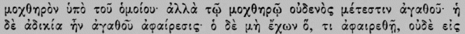 carried this fault of his prototype much farther. Dionysius the Areopagite, De Divinis Nominibus, is also strongly affected with it. Even in the fragments of the Eleatic Melissus we find clear instances of such subtle argumentation (especially § § 2-5 in Brandis's Comment. Eleat.). His method with concepts resembles blows given for the sake of appearance, which never hit the mark; these concepts never touch the reality from which they have their content, but, floating in the atmosphere of abstract universality, pass lightly over it. A further real specimen of such subtle argumentation is the little book De Diis et Mundo of the philosopher Sallust, especially chaps. 7, 12, and 17. A real gem of philosophical subtle argumentation, passing into decided sophistication, is the following reasoning of the Platonist Maximus Tyrius, which I will quote, as it is short. "Every injustice is the taking away of a good thing; there is no good thing other than virtue. Virtue, however, cannot be taken away, therefore it is not possible for the virtuous to suffer injustice from the wicked. It remains either that no injustice at all can be suffered, or that the wicked endures it from the wicked. But the wicked person possesses no good at all, for only virtue is such a good; therefore no good can be taken from him. Thus he also cannot suffer any injustice; hence injustice is an impossible thing." The original, which through repetitions is less concise, runs as follows: