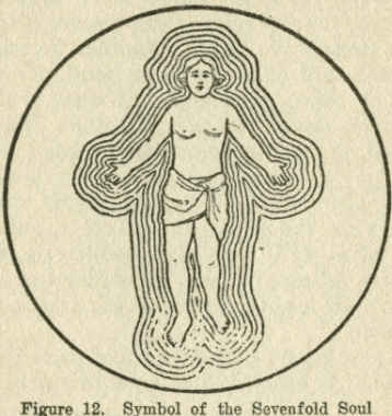 PART 9: THE SEVENFOLD SOUL OF MAN The Soul Is One in Essence, Yet Wrapped in a Sevenfold Veil. Veils Which Conceal, but Yet Reveal. The Elemental Soul. The Pattern of Form. The Etheric Double. The So-called Astral Body. The "Ghost." The Mineral Soul. The Spirit of the Chemical Processes in the Laboratory of the Body. The Plant Soul. The Spirit of the Vegetable Processes of Growth in the Body. The Animal Soul., The Spirit of the Animal Functions of the Body. The Truth About the Animal Passions and the Physical Processes. The Human Soul. The Spirit of Intellectual Activity and Reasoning Processes. A Plane of Great Trials and Struggles. The Soul of the Demi-Gods. The Spirit of the Altruistic Emotions and Activities, and of Cosmic Consciousness. The Higher Planes of the Soul. The Soul of the Gods. The Spirit of the Divine Faculties of the Soul. Summary of the Spiritual Evolution from Element to God-hood. In the Secret Doctrine of the Rosicrucians, we find the following Seventh Aphorism: The Seventh Aphorism 7. The Soul of Man is Sevenfold, yet but One in essence; Man's Spiritual Unfoldment has as its end the Discovery of Himself beneath the Sevenfold Veil. In this Seventh Aphorism of Creation, the Rosicrucian is directed to apply his attention to the concept of the Sevenfold Soul—One in essence—of Man; which in the figurative language of the mystic constitutes the seven veils which conceal from (yet reveal to) Man his real Self. This concept is represented by the Rosicrucians by means of the symbol of the figure of a man surrounded by seven outlined shapes—the man, himself in his essence, is represented by the blank space disclosed by the inmost outline, and each one of the "concealing but revealing veils" is represented by an outlined figure, each being but one of the series of seven. The series of outlines, be it noted, is enclosed in the circle representing the Infinite Unmanifest. The Symbol is interpreted as follows: (1) The Infinite Unmanifest manifests itself in the Elemental Soul; (2) the Elemental Soul takes upon itself the outward form of Mineral Substance; (3) The Mineral Soul evolves from itself the Plant Soul; (4) the Plant Soul evolves from itself the Animal Soul; (5) the Animal Soul evolves from itself the Human Soul; (6) the Human Soul unfolds into the Soul of the Demi-Gods; (7) the Soul of the Demi-Gods unfolds into the Soul of the Gods; and finally, the Soul of the Gods once more is resolved into Pure Spirit, which is represented by the blank space at the centre of the symbol. This statement will be more clearly apprehended by those who have carefully studied the preceding chapters conveying instruction concerning the Seven Planes of Consciousness, and much of the information contained in those chapters is to be taken into consideration in the study of the present chapter. Figure 12. Symbol of the Sevenfold Soul It will be noted that while these Seven Veils serve to conceal the Real Self—in the sense of imposing limitations and shape to it, yet at the same time it reveals the presence of Spirit by means of its outlines. The ancient teachers were wont to illustrate this concealing-revealment by means of a bit of thin gauzy drapery suspended across the space of an open door or open window into which the breeze is blowing. The drapery covers (and thus conceals) the moving wind, yet at the same time it shows a form representing the movement and presence of the wind, and thus reveals the latter. Another favorite illustration was that of an invisible hand, of itself impossible of being perceived, but upon which was placed seven gloves, one over the other. The gloves were filled, and the presence of the hand revealed; but each glove, in turn, is mistaken for the hand itself. The hand is able to feel but faintly, and to act clumsily when the gloves are all on it, but as each glove is taken off it feels more sensitively, and performs more delicate actions; but without at least one of the gloves it is not apparent at all, even to the eyes of its owner. Let us now briefly consider each of these Veils with which Spirit is concealed, and yet revealed. I. The Elemental Soul There is only one REAL Soul, of course; and when the Rosicrucians speak of "The Elemental Soul" they mean simply the Soul clad in the garments of elemental substance—covered with the veil of elemental substance, which while concealing its real nature yet serves to reveal it in manifestation. Following the terms of the symbol, it may be said that the Infinite Unmanifest involves itself first in the garment of Elemental Substance, or wraps itself in the veil thereof. Elemental Substance, in the sense in which the term is used by the Rosicrucians in this connection, is a very subtle, tenuous form of substance—a form of substance which may be regarded as the "ancestor" of the most subtle form of matter known to science today. It lies far back of the plane of the electrons, ions, or corpuscles of which matter (as commonly known) is composed. The Elemental Soul, clad in the garments of Elemental Matter is the pattern upon which the ordinary physical body is built. It is the "ghost" of the physical body, and persists after the disintegration of the latter. The intelligence or consciousness manifesting in this garment of substance is quite simple and elementary, and performs merely the office of providing and sustaining a pattern or form upon which the ordinary physical body is built. This Elemental Soul, embodied in elemental substance as stated, is that Something which to the race has been known as the "ghost," "spirit" (in this case the term "spirit" is grossly misused and inappropriate), ethereal body, "fluidic body," "double," "wraith," "doppelganger," etc. It has sometimes been called "the astral body," but this is a mistake, for what the occultists have long known as the true "astral body" is something very different. This Elementary Soul survives the dissolution of the physical body of the individual to wh
