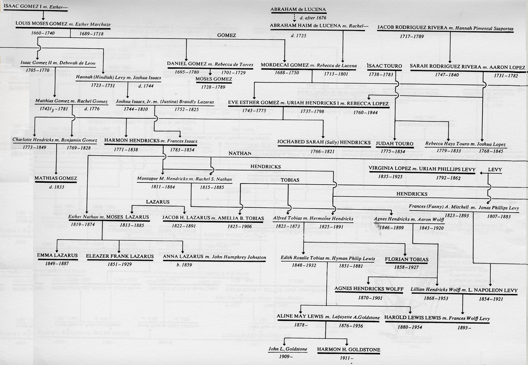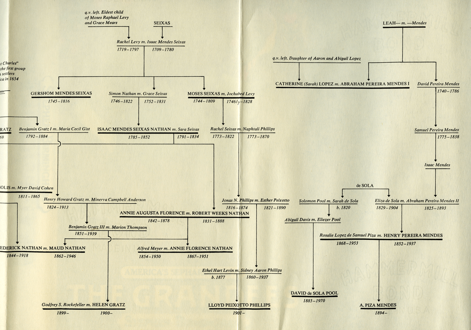 A delegation of Spanish Jews appears before Ferdinand and Isabella, beseeching the monarchs to repeal their Expulsion Edict. Torquemada, at right, urges otherwise. New York Public Library Picture Collection Mr. Aaron Lopez, the affluent Newport merchant. American Jewish Historical Society Moses Levy of New York. Courtesy of Mrs. Lafayette A. Goldstone Bilhah Abigail Levy Franks, matron of Philadelphia. American Jewish Historical Society Phila Franks who, to her mother's pain, married General Oliver De Lancey. American Jewish Historical Society Judah Touro, philanthropist and "a strange man," according to contemporaries. Frick Art Reference Library Newport's famed Touro Synagogue. Courtesy of the Society of Friends of Touro Synagogue The beautiful and poetic Rebecca Gratz. American Jewish Historical Society Rebecca Gratz, still beautiful in her eighties. American Jewish Historical Society. The house that Daniel Gomez built, as it stands today, near Newburgh, N.Y. New York Times Studio The mansion of Uriah Hendricks II, in Belleville, N.J. A second mansard roof was added to help accommodate the copper magnate's seventeen children. Courtesy of Mrs. Lafayette A. Goldstone The Navy firebrand, Uriah Phillips Levy, as portrayed by Thomas Sully. American Jewish Historical Society Uriah Phillipos Levy at the peak of his career. American Jewish Historical Society Chicago's monument to Haym Salomon, Revolutionary financier. Ewing Galloway, N.Y. Aunt Amelia Barnard Lazarus, whose home was a haven for the artistic and well-placed. Courtesy of Mrs. Lafayette A. Goldstone The tragic Annie Florance Nathan Her husband, Robert Weeks Nathan