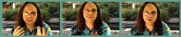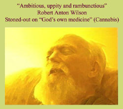The greatest relief I get from pain is marijuana brownies made by a wo/men's collective of people with muscular dystrophy, post-polio syndrome, AIDS, cancer, and a few other problems which are very clearly and obviously helped by marijuana brownies. And when the federal government announces that they've canceled the 10th amendment, and the states have no right to legalize anything the federal government is against, I am naturally furious. They are threatening me with a life of steady pain until I die. That's what they're threatening me with. Of course I'm pissed off at them. And it's not only for my own sake, it's for the sake of all the AIDS patients, all the cancer patients, all the other people for whom life is bearable because they can get some marijuana in one form or another. It is one of the best pain killers known, and it's not addictive, and it has an extra added benefit, the high, which is what T.S.O.G. (tsarist occupational government) is afraid of. They don't want anybody to get high because people who are high get happym and people who get happy get ambitious and uppity and rambunctious. They want everybody to be depressed. But the high is part of the cure. I think every goddamned disease in the world is improved by feeling happy and good, and any compound that not only relieves pain but makes you feel happy and cheerful and think of funny things is helping your cure. And the remnants of the cannabis muffin that I had around 6:00, God's own medicine, nothing is bothering me. Around 6:00 the light was starting to bother me again, now nothing is bothering me. "Ambitious, uppity and rambunctious" Robert Anton Wilson, stoned-out on "God's own medicine" (Cannabis) Most of today I spent on the couch, listening to the atmospheres channel. That's New Age music. I don't know why, sometimes I look for some Classical, but today I was in the mood for atmospheres. I was doing visualizations. Yeah, I was following the rhythm of the music. I had lights flowing up through my body trying to cure the pain in the legs. Between that and the muffins, I finally got rid of the pain. But it took a long time. Sometimes it's quicker than others. I think pain is a mistake. If I'd been around at the Creation, I would have had a lot of helpful suggestions, as Mencken said. And I would have said, "We don't need pain. Just put a little neon light on the forehead that lights up and says 'See a doctor.' 'Hey, your sign is on, go see a doctor.' You don't need pain to tell you. You know, seriously, what I'm getting at is I think pain can be abolished. I don't see any reason why all forms of pain can't be abolished with the proper drugs. And I think the Government's attempt to control drug research out of fear that people may feel too good is the last dying gasp of the dinosaur age. I think we are governed by Tyranosaurus Rex and Raptors and types like that. I really think the abolition of pain is the noblest goal we can aim for. Also, clean water for everybody. And enough food. I think these are quite attainable goals, if society would say these would be our goals. Spread clean water, adequate food and the absence of pain all over the planet, and who would want to become a terrorist? What would they be angry about? What would they be mad about to start throwing bombs at somebody else? Q. What about the eye in the triangle? It's rather inconspicuous. I just want to point out how often the eye in the triangle is there. It pops up frequently. And this, of course, is the symbol of the Illuminati, the alleged secret society, that controls the whole world according to a lot of occult theories, and you'll find it on the back of your dollar bill. It's great to see all of your faces out there, ladies, gentlemen, and narcs. Everybody look around and see if you can spot the narcs. They are the ones who look like hippies. JAVIER K. CANEEDA II Q. For an expert in conspiracy, you're probably the least paranoid person I've ever met. You have all of the data, but none of the fear that most everybody else who is involved in conspiracy theories ... A. Well, my belief is I don't believe in one big conspiracy that runs everything. I prefer to think that there's at minimum, at any given time, there's about 24 conspiracies afoot. And as far as I've been able to discover in all my years of being involved, more or less unwillingly, in this field, I cannot find any proof of any conspiracy that really existed, was really brought into court and convicted, that lasted more than ten years before everybody double-crossed everybody else and the conspiracy fell apart. To redefine the power elite as somebody else, I regard that as a loser script. I define the power elite as myself and my friends. And that's a winner script. And the way to accomplish things is with a winner script. I define myself as a winner. I define my program as winnable. And I count down the stupidity of whoever seems to be in power to undo them eventually because as I said, every conspiracy has a natural life span, every conspiracy collapses through double-crosses from within or by superior cleverness by rival conspiracies. And stupidity has a definite evolutionary function. I am all for abolishing stupidity, but before it goes, while there's still a lot of it around, we should pay tribute to it. The strongest conspiracy on the planet is the conspiracy of the stupid to prevent schools from educating their children, because they want their children to be as dumb as they are, to prevent television from putting anything intelligent on, as much as possible. Q. What is it about the human psyche that seems to be drawn towards these conspiracy theories? Is it some love of the unknown, or some idea that there may be forces out there that are controlling our destiny? A. Well, I think there are three factors. A, nobody likes to take the blame for their own problems, so they look for somebody else to blame. And if you can find a big enough group, you've explained everything in you