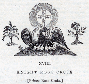 When this Degree had its origin, it is not important to inquire; nor with what different rites it has been practised in different countries and at various times. It is of very high antiquity. Its ceremonies differ with the degrees of latitude and longitude, and it receives variant interpretations. If we were to examine all the different ceremonials, their emblems, and their formulas, we should see that all that belongs to the primitive and essential elements of the order, is respected in every sanctuary. All alike practise virtue, that it may produce fruit. All labor, like us, for the extirpation of vice, the purification of man, the development of the arts and sciences, and the relief of humanity. None admit an adept to their lofty philosophical knowledge, and mysterious sciences, until he has been purified at the altar of the symbolic Degrees. Of what importance are differences of opinion as to the age and genealogy of the Degree, or variance in the practice, ceremonial and liturgy, or the shade of color of the banner under which each tribe of Israel marched, if all revere the Holy Arch of the symbolic Degrees, first and unalterable source of Free-Masonry; if all revere our conservative principles, and are with us in the great purposes of our organization? If, anywhere, brethren of a particular religious belief have been excluded from this Degree, it merely shows how gravely the purposes and plan of Masonry may be misunderstood. For whenever the door of any Degree is closed against him who believes in one God and the soul's immortality, on account of the other tenets of his faith, that Degree is Masonry no longer. No Mason has the right to interpret the symbols of this Degree for another, or to refuse him its mysteries, if he will not take them with the explanation and commentary superadded. Listen, my brother, to our explanation of the symbols of the Degree, and then give them such further interpretation as you think fit. The Cross has been a sacred symbol from the earliest Antiquity. It is found upon all the enduring monuments of the world, in Egypt, in Assyria, in Hindostan, in Persia, and on the Buddhist towers of Ireland. Buddha was said to have died upon it. The Druids cut an oak into its shape and held it sacred, and built their temples in that form. Pointing to the four quarters of the world, it was the symbol of universal nature. It was on a cruciform tree, that Chrishna was said to have expired, pierced with arrows. It was revered in Mexico. But its peculiar meaning in this Degree, is that given to it by the Ancient Egyptians. Thoth or Phtha is represented on the oldest monuments carrying in his hand the Crux Ansata, or Ankh, [a Tau cross, with a ring or circle over it]. He is so seen on the double tablet of Shufu and Noh Shufu, builders of the greatest of the Pyramids, at Wady Meghara, in the peninsula of Sinai. It was the hieroglyphic for life, and with a triangle prefixed meant life-giving. To us therefore it is the symbol of Life -- of that life that emanated from the Deity, and of that Eternal Life for which we all hope; through our faith in God's infinite goodness. The ROSE, was anciently sacred to Aurora and the Sun. It is a symbol of Dawn, of the resurrection of Light and the renewal of life, and therefore of the dawn of the first day, and more particularly of the resurrection: and the Cross and Rose together are therefore hieroglyphically to be read, the Dawn of Eternal Life which all Nations have hoped for by the advent of a Redeemer. The Pelican feeding her young is an emblem of the large and bountiful beneficence of Nature, of the Redeemer of fallen man, and of that humanity and charity that ought to distinguish a Knight of this Degree. The Eagle was the living Symbol of the Egyptian God Mendes or Menthra, whom Sesostris-Ramses made one with Amun-Re, the God of Thebes and Upper Egypt, and the representative of the Sun, the word RE meaning Sun or King. The Compass surmounted with a crown signifies that notwithstanding the high rank attained in Masonry by a Knight of the Rose Croix, equity and impartiality are invariably to govern his conduct. To the word INRI, inscribed on the Crux Ansata over the Master's Seat, many meanings have been assigned. The Christian Initiate reverentially sees in it the initials of the inscription upon the cross on which Christ suffered -- Jesus Nazarenus Rex Iudæorum. The sages of Antiquity connected it with one of the greatest secrets of Nature, that of universal regeneration. They interpreted it thus, Igne Natura renovator integra; [entire nature is renovated by fire]: The Alchemical or Hermetic Masons framed for it this aphorism, Igne nitrum roris invenitur. And the Jesuits are charged with having applied to it this odious axiom, Justum necare reges impios. The four letters are the initials of the Hebrew words that represent the four elements -- Iammim, the seas or water; Nour, fire; Rouach, the air, and Iebeschah, the dry earth. How we read it, I need not repeat to you. The CROSS