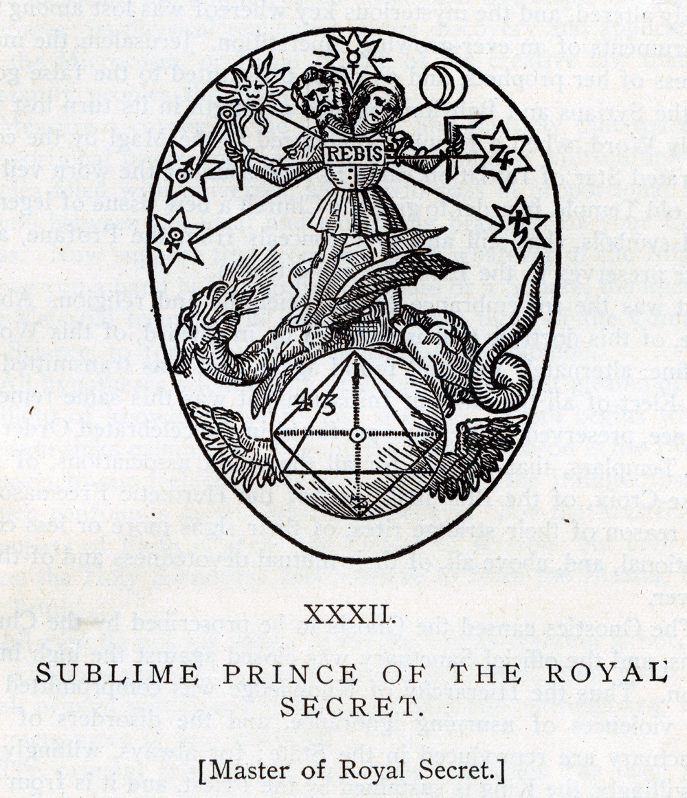 XXXII SUBLIME PRINCE OF THE ROYAL SECRET. [Master of Royal Secret.] THE Occult Science of the Ancient Magi was concealed under the shadows of the Ancient Mysteries: it was imperfectly revealed or rather disfigured by the Gnostics: it is guessed at under the obscurities that cover the pretended crimes of the Templars; and it is found enveloped in enigmas that seem impenetrable, in the Rites of the Highest Masonry. Magism was the Science of Abraham and Orpheus, of Confucius and Zoroaster. It was the dogmas of this Science that were engraven on the tables of stone by Hanoch and Trismegistus. Moses purified and re-veiled them, for that is the meaning of the word reveal. He covered them with a new veil, when he made of the Holy Kabalah the exclusive heritage of the people of Israel, and the inviolable Secret of its priests. The Mysteries of Thebes and Eleusis preserved among the nations some symbols of it, already altered, and the mysterious key whereof was lost among the instruments of an ever-growing superstition. Jerusalem, the murderess of her prophets, and so often prostituted to the false gods of the Syrians and Babylonians, had at length in its turn lost the Holy Word, when a Prophet announced to the Magi by the consecrated Star of Initiation, came to rend asunder the worn veil of the old Temple, in order to give the Church a new tissue of legends and symbols, that still and ever conceals from the Profane, and ever preserves to the Elect the same truths. It was the remembrance of this scientific and religious Absolute, of this doctrine that is summed up in a word, of this Word, in fine, alternately lost and found again, that was transmitted to the Elect of all the Ancient Initiations: it was this same remembrance, preserved, or perhaps profaned in the celebrated Order of the Templars, that became for all the secret associations, of the Rose-Croix, of the Illuminati, and of the Hermetic Freemasons, the reason of their strange rites, of their signs more or less conventional, and, above all, of their mutual devotedness and of their power. The Gnostics caused the Gnosis to be proscribed by the Christians, and the official Sanctuary was closed against the high initiation. Thus the Hierarchy of Knowledge was compromitted by the violences of usurping ignorance, and the disorders of the Sanctuary are reproduced in the State; for always, willingly or unwillingly, the King is sustained by the Priest, and it is from the eternal Sanctuary of the Divine instruction that the Powers of the Earth, to insure themselves durability, must receive their consecration and their force. The Hermetic Science of the early Christian ages, cultivated also by Geber, Alfarabius, and others of the Arabs, studied by the Chiefs of the Templars, and embodied in certain symbols of the higher Degrees of Freemasonry, may be accurately defined as the Kabalah in active realization, or the Magic of Works. It has three analogous Degrees, religious, philosophical, and physical realization. Its religious realization is the durable foundation of the true Empire and the true Priesthood that rule in the realm of human intellect: its philosophical realization is the establishment of an absolute Doctrine, known in all times as the "HOLY Doctrine," and of which PLUTARCH, in the Treatise "de Iside et Osiride," speaks at large but mysteriously; and of a Hierarchical instruction to secure the uninterrupted succession of Adepts among the Initiates: its physical realization is the discovery and application, in the Microcosm, or Little World, of the creative law that incessantly peoples the great Universe. Measure a corner of the Creation, and multiply that space in proportional progression, and the entire Infinite will multiply its circles filled with universes, which will pass in proportional segments between the ideal and elongating branches of your Compass. Now suppose that from any point whatever of the Infinite above you a hand holds another Compass or a Square, the lines of the Celestial triangle will necessarily meet those of the Compass of Science, to form the Mysterious Star of Solomon. All hypotheses scientifically probable are the last gleams of the twilight of knowledge, or its last shadows. Faith begins where Reason sinks exhausted. Beyond the human Reason is the Divine Reason, to our feebleness the great Absurdity, the Infinite Absurd, which confounds us and which we believe. For the Master, the Compass of Faith is above the Square of Reason; but both rest upon the Holy Scriptures and combine to form the Blazing Star of Truth. All eyes do not see alike. Even the visible creation is not, for all who look upon it, of one form and one color. Our brain is a book printed within and without, and the two writings are, with all men, more or less confused. The primary tradition of the single revelation has been preserved under the name of the "Kabalah," by the Priesthood of Israel. The Kabalistic doctrine, which was also the dogma of the Magi and of Hermes, is contained in the Sepher Yetsairah, the Sohar, and the Talmud. According to that doctrine, the Absolute is the Being, in which The Word Is, the Word that is the utterance and expression of being and life. Magic is that which it is; it is by itself, like the mathematics; for it is the exact and absolute science of Nature and its laws. Magic is the science of the Ancient Magi: and the Christian religion, which has imposed silence on the lying oracles, and put an end to the prestiges of the false Gods, itself reveres those Magi who came from the East, guided by a Star, to adore the Saviour of the world in His cradle. Tradition also gives these Magi the title of "Kings;" because initiation into Magism constitutes a genuine royalty; and because the grand art of the Magi is styled by all the Adepts, "The Royal Art," or the Holy Realm or Empire, Sanctum Regnum. The Star which guided them is that same Blazing Star, the image whereof we find in all initiations. To the Alchemists it is the