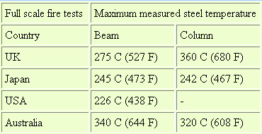 A fire in a steel car park is a very imprecise event, and the heating of the steel supports varied widely in the tests. The temperature of (horizontal) beams varied from 226 C in the USA to 340 C in Australia; and the temperature of (vertical) columns varied from 242 C in Japan to 360 C in the UK. None of the steel was protected with the thermal insulation that is commonly used in office buildings, including the WTC. To my mind, this is definitive answer: the maximum temperature in the unprotected steel supports in those test fires was 360 degrees C (680 F), and that is a long way from the first critical threshold in structural steel, 550 degrees C (1022 F). Some may argue that there was much more fuel involved in the WTC events that in a car park. There was also much more steel involved, the support columns were more massive, and they were protected with insulation. I think the case is made: The fire did not weaken the WTC structure sufficiently to cause the collapse of the towers. — J. McMichael Detailed information of the construction World Trade Center (with many photographs) can be found at http://www.GreatBuildings.com/buildings/World_Trade_Center.html |