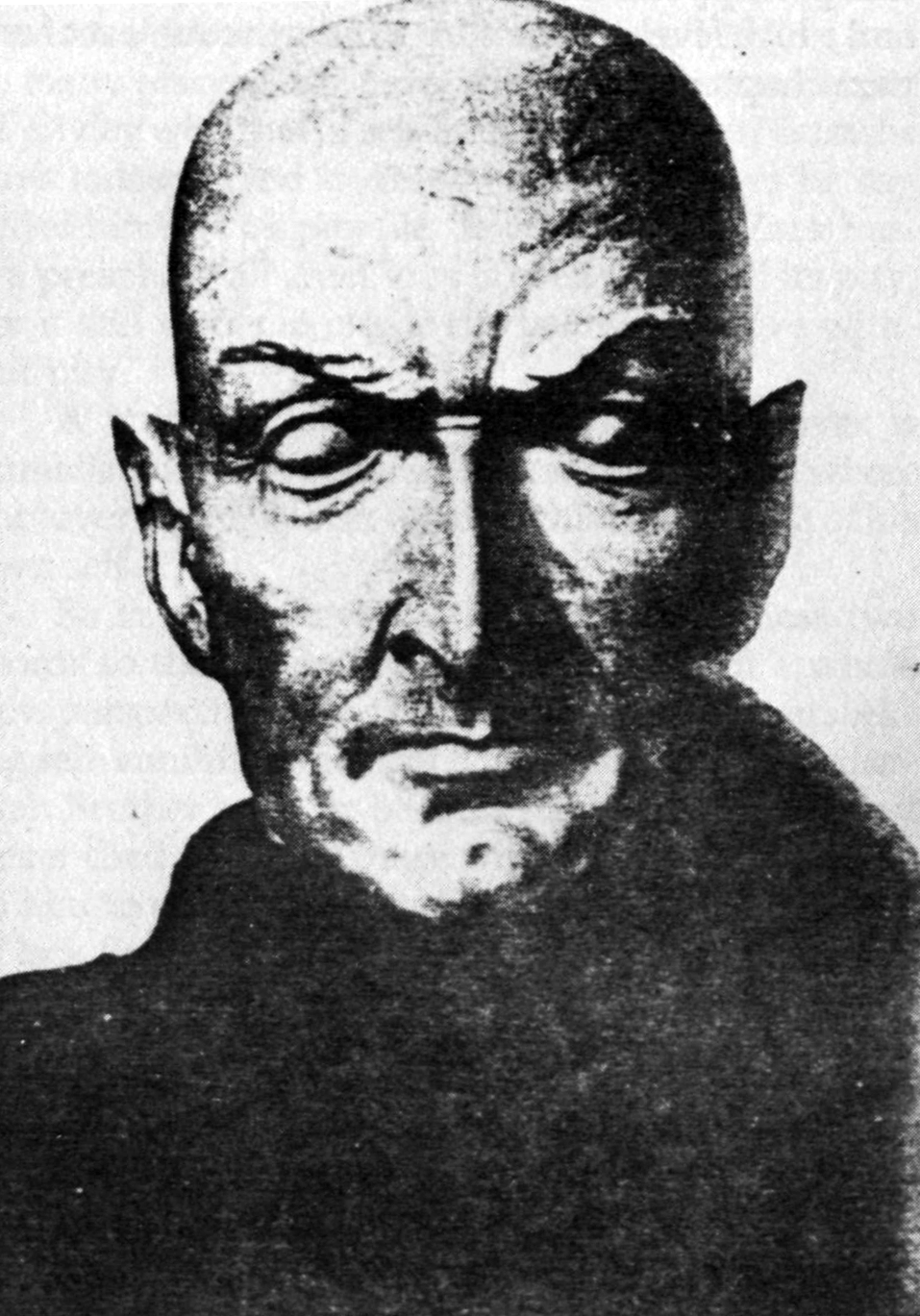 Here it is clear that the egregore is intended to work in a particular magical way. It is a kind of "battery" which can be charged with the psychic energy of the lodge. This "battery" is given a particular form, which acts as an access-key to its power. When members of the lodge have need of the accumulated and stored magical energy, they can "tap into" it if they have the proper ritual keys. In the ritual practice of the FS, the GOTOS is especially charged during the Easter Lodge when, through the formation of the magical Chain of Brotherhood, energy is circulated to the GOTOS. In trance states certain initiates of the FS could actually gain "astral" visions of the humanoid appearance of the GOTOS. This image was at some point cast in a sculpture by Sorella Gabriele and set up in the Lodge Temple in Berlin. At one time all members of the FS were to have one of these busts of the "Master Gothos" in their private sanctuaries (see page 72).