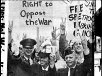 GI'S HOME NOW!! ALIVE!! FTA HAL MUSKAT, U.S. ARMY: There were close to 300 anti-war newspapers, written, produced and published on bases all throughout the world. Wherever there were American GIs in the world. [RIGHT-ON POST NARRATOR: Linking soldiers around the world, the GI Press also inspired many outside the military. [ALL POWER TO
