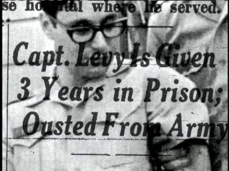 and it was the most remarkable thing when hundreds, hundreds of G.I.s would hang out of windows, out of the barracks, and give me the "V" sign, or give me the clenched fist. This was mind-boggling to me. This was a revelation. [Capt. Levy Is Given 3 Years in Prison; Ousted From Army Vets: 'Free Levy' ARMY DOCTOR FACES ADDITIONAL CHARGE] |