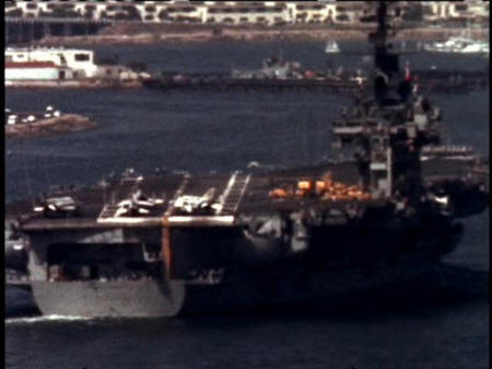 as we sat around and brainstormed about what kind of a non-violent action can we take that can actually touch sailors. CONNIE STAY HOME, DANCING BEAR PRODUCTIONS, 1972: So we looked around and we saw the aircraft carrier, which was the biggest ship in San Diego Harbor ... it's the most impressive symbol of American power. It's hard for people to realize this but that ship is not a naval ship anymore ... it's really part of airpower that we use to attack peasants. It's the weapon of a bully. It's the weapon of aggression. |