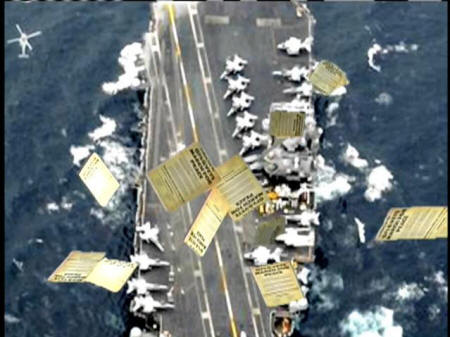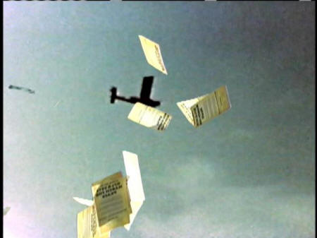 Thousands and thousands of leaflets. At one point I know we were a little concerned about getting shot down, but nothing happened. Evidently they landed pretty accurately. That's what they testified at the court-martial. [BRING THE TROOPS HOME NOW] |