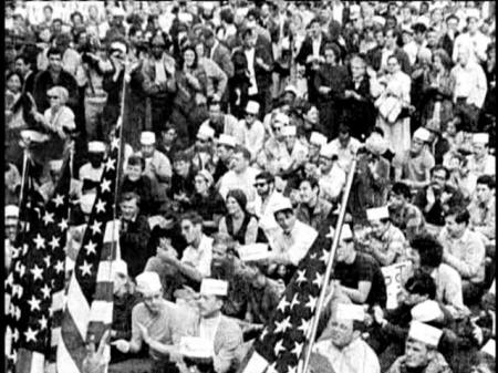 Oppose the War BRING OUR BOYS HOME and I could wear my uniform protesting the United States' involvement in Vietnam. NARRATOR: Susan Schnall was court-martialed for making a political statement while in uniform. [March, Air