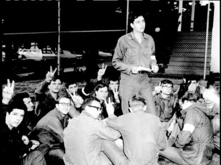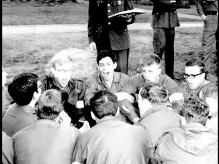 RANDY ROWLAND, U.S. ARMY: And it was at the roll call formation we had a signal. That was when we were supposed to break ranks, and we did, and then we walked over here and sat down. At a certain point, Commandant came out and read us The Mutiny Act ... and we just kept singing louder ... kind of linked arms and sang and sang. |