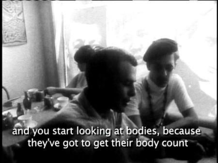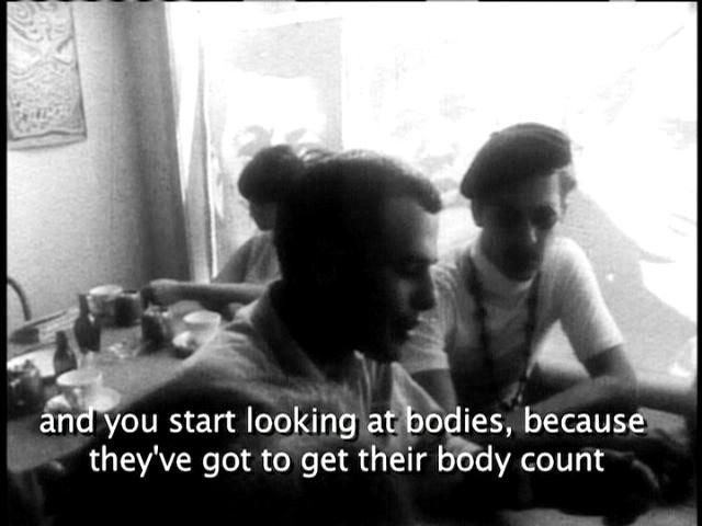 And as time went on, the guys who had been to Vietnam played a subversive role to the guys who were going. GI: And they go out on ambushes. Like for a one-month period ... we go out on ambushes and we kill over 50 people ... in the early hours of the morning ... and you start looking at bodies, because they've got to get their body count ... |