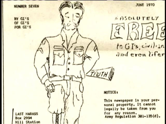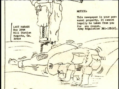 You're not allowed to have any copies of this inside the barracks. Go and turn this in immediately. That night, then, the paper went around in the barracks, everyone is reading it, two or three guys at a time, sitting around on a bed, around guys' beds and stuff like that, checking out this paper. LAST HARASS TRUTH LAST HARASS OUR FIGHT IS NOT IN VIETNAM |
