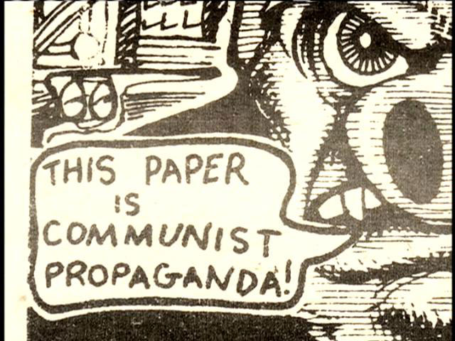 THIS PAPER IS COMMUNIST PROPAGANDA! FTA NARRATOR: Despite the military's best efforts, the Underground Press became the lifeblood of the GI Movement. BRING ALL THE GI'S HOME NOW!! ALIVE!! FTA As the Army's own recruiting slogan, "Fun, Travel and Adventure" turned into the popular GI expression: FUCK THE ARMY. BRAGG BRIEFS: GI'S UNITED AGAINST THE WAR IN INDOCHINA |
