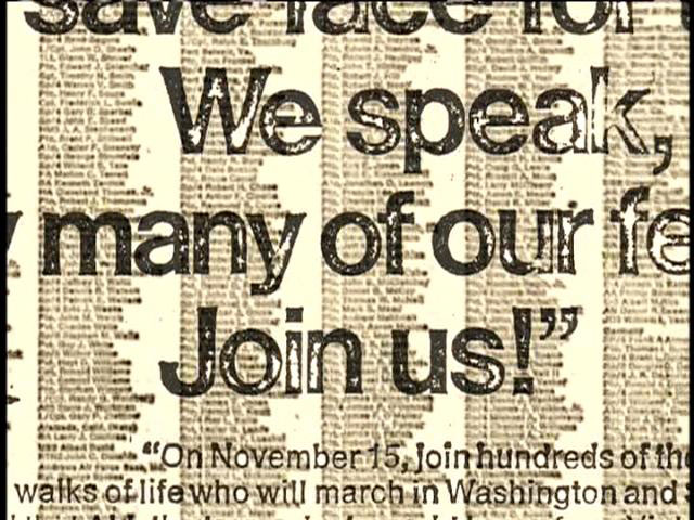 Stationed in Vietnam DAVE BLALOCK, U.S. ARMY: It was a full page advertisement signed by 1,400 active duty soldiers, denouncing the war and supporting the November 15th demonstration, the November 15th moratorium demonstration. Helping Hand Available Here MORATORIUM |