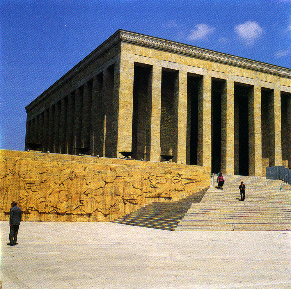 ANKARA On April 23rd 1920, Mustafa Kemal Ataturk convened the first Turkish National Assembly in Ankara. Since October 14th 1923, Ankara has been the capital of the Turkish Republic. Ankara was established neither at the sea, nor on an important river. In those days, the distinguishing feature about Ankara was its being in the heart of Anatolia. In about six to ten years, it developed from a small unimportant village to a metropolis with a population of 3,5 million. Today the city has a European atmosphere with its broad boulevards, squares, parks and modern buildings. All state institutions such as the educational system administration, state opera, ministries and parliament are concentrated here. In Ankara there is a dry climate with average temperatures of 23C in summer and -8C in winter. The city is famous in Europe for its beautiful Angora cats and its high quality mohair obtained from Angora goats. The old city of Ankara History According to excavation findings, the citadel hill was inhabited in the Stone Age. After hte fall of the Hittite Empire in 1200 B.C. Ankara fell into the hands of the Phrygians, who established a big city to the south of the hill. When Alexander the Great marched to the south through Asia Minor, cutting the famous knot in Gordion, he also captured Ankara. After his death, the city came under the authority of the Seleucids. In 278 B.C. the Celts (Galatians) came to Anatolia and made Ankara their capital, calling it Galatia. In 25 B.C. Galatia was a Roman province. With the Romans, the best period of this old settlement began. In this age also, the Temple of Augustus, the thermal baths and the column of Julian were built. Under the rule of the Byzantines Ankara became a metropolis. In the years 314 and 358 A.D. councils were formed here. In the 6th and 7th century A.D. the sovereignty of the citiy changed between the Persians and the Arabs. Later, Crusaders captured the city. In 1071 the city passed into the hands of the Seljuks, and later on the city was captured by Ottoman Turks in 1360. Places worth seeing The citadel This dates back to the time of Emperor Augustus (1st century A.D.). It was restored many times in later centuries. Ancient remains and inscriptioins are still recognizable on the walls. There are residential premises in the citadel. The Alaeddin mosque is easy to see in the narrow streets. Museum of Anatolian Civilisations Museum of Anatolian Civilisations: 1. Early Stone period (Palaeolithic); 2. Late Stone period (Neolithic); 3. Chalcolithic; 4. Bronze Age; 5. Assyrian colonies; 6. Old-Hittit Age; 7. Hittit-Empire Age; 8. Neo-Hittit Age; 9. Phrygia; 10. Classic period The museum consists of valuable objects from sites discovered in Anatolia. The collection in this museum is the most important one in Ankara from the point of view of its historical and art-historical exhibits. It is a unique museum, having a rich collection of Hittite exhibits. This world famous museum is in a restored bazaar building (Mustafa Pasa Bedesten) dating from the 15th century, and in Kursunlu Han (khan). The works of art are exhibited in two sections: In the middle hall, items in stone can be found, and in the side halls are small finds exhibited in chronological order. Our tour starts with the display of exhibits from the Early Stone Age (Palaeolithic), situated on the right of the entrance. Here, finds from the cave of Karain near Antalya, including the cranial bones of Neanderthal human beings and others, can be seen. We continue with an exhibition from the later Stone Age (Neolithic), with human and bull head reliefs, mural paintings and finds from the oldest settlements of Anatolia (Hacilar and Catalhoyuk 6th-5th century B.C.). Apart from these, there are finds from the earlier Bronze Age (3000 B.C.-1950 B.C.), grave finds from emperors and princes' graves of West and Central Anatolia, old Assyrian cuneiform writing, seal cylinders and gold jewels from Kadesh (Kultepe). In the next hall are Hittite works from Alacahoyuk, Bogazkoy (Hattusa) and Corum. The important works in the following rooms are from the Lydians, Urartians, and Phrygians. Our tour ends here with models of Classical Age altars. The middle hall is crowned by ten domes resting on four pillars. The big Hittite sculptures of their greatest era and the late Hittite period (1450 B.C.-700 B.C.) are intersting. Other works to see are the orthostat reliefs from palaces and temples, the high relief of the weather god Teshub from the royal gate in Hattusa, the charioteer, and the goddess Cybele on a lion, are the most beautiful examples of Hittite art. Pot in the form of an animal (museum) Mausoleum of Ataturk (Anit Kabir) Mausoleum of Ataturk The construction of this colossal mausoleum was begun in 1944 and it was completed in 1953. The designer of the mausoleum is the Turkish architect Emin Onat. A 260m long street leads to the courtyard. It is planted with shady trees brought from various regions of the country and from foreign countries. It is also flanked with lions sculpted in neo-Hittite style. The stairs on the left of this courtyard lead into the tomb with the sarcophagus of Ataturk. The mausoleum is surrounded by an arcade with square columns. The walls of the hall are covered with red marble plates and the ceiling has a gold mosaic with Turkish ornamentation. On the right facade of the mausoleum is an extract taken from the famous speech given by Ataturk on the occasion of the 10th anniversary of the republic. On the left hand side we read his message to the youth of the nation. On the opposite side of the mausoleum is the sarchophagus of Ismet Inonu (1884-1974), the second president of turkey, and the closest military friend of Ataturk. From the mausoleum site there is a beautiful panorama of Ankara. The Ethnographical Museum This was built in 1925 in Ottoman style. Between 1938-1953 the mortal frame of Mustafa Kemal Ataturk rested here. When his mausoleum was finished, he was carried there o