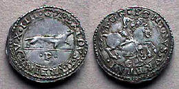 reverse depicts St. George, standing, and spearing a dragon on the ground.