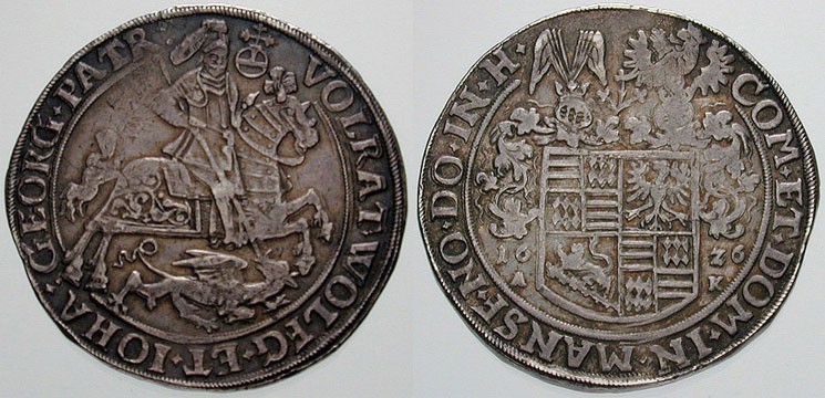 Georg II von Eisleben. 1626. The obverse depicts St. George riding on
