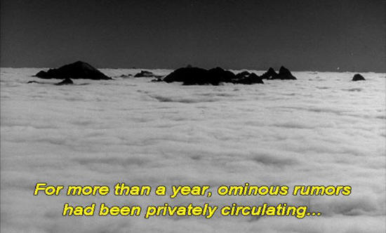 Narrator: It is the stated position of the U.S. Air Force that their safeguards would prevent the occurrence of such events as are depicted in this film. Furthermore, it should be noted that none of the characters portrayed in this film are meant to represent any real persons living or dead. For more than a year, ominous rumors had been privately circulating ... ... among high-level Western leaders ...