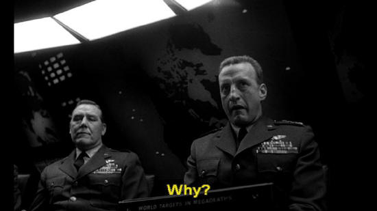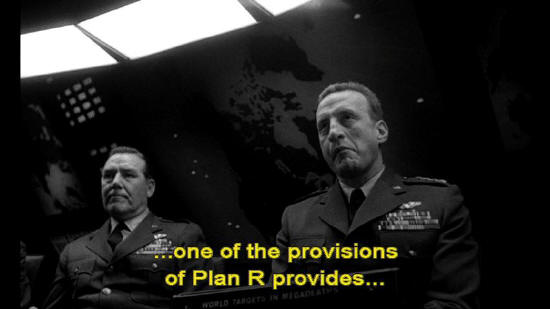 General Turgidson: I'm afraid we're unable to communicate with any of the aircraft. President: Why? General Turgidson: As you may recall, sir ... ... one of the provisions of Plan R provides ...