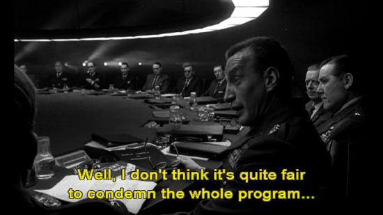 General Turgidson: Well, I don't think it's quite fair to condemn the whole program ... because of a single slip-up, sir. President: I wanna speak to General Ripper on the telephone. General Turgidson: I'm afraid that's impossible.