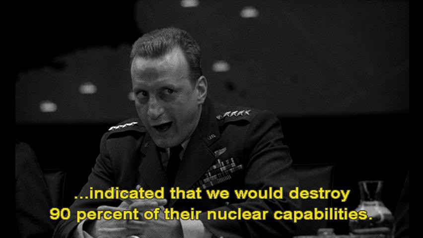 We could easily assign three missiles to every target ... ... and still have an effective reserve force for any other contingency. Six: an unofficial study which we undertook of this eventuality ... ... indicated that we would destroy 90 percent of their nuclear capabilities.