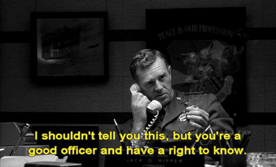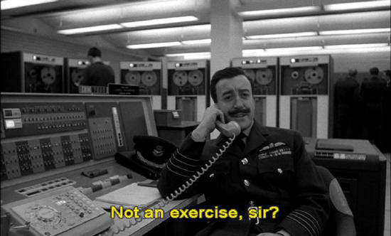 General Jack Ripper: I'm afraid this is not an exercise. Capt. Mandrake: Not an exercise, sir? General Jack Ripper: I shouldn't tell you this, but you're a good officer and have a right to know. It looks like we're in a shooting war.