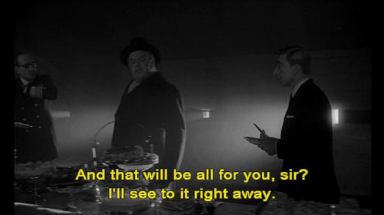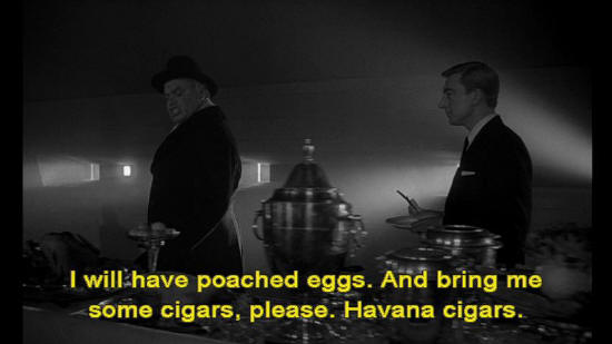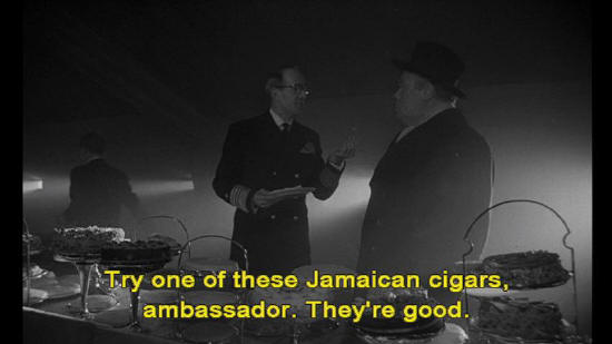 Ambassador Alexi: I will have poached eggs. And bring me some cigars, please. Havana cigars. Waiter: And that will be all for you, sir? I'll see to it right away. Water 2: Try one of these Jamaican cigars, Ambassador. They're good. Ambassador Alexi: Thank you, no. I do not support the work of imperialist stooges.