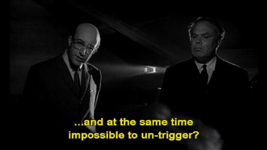 ... and at the same time impossible to un-trigger? Dr. Strangelove: Mr. President, it is not only possible ... ... it is essential. That is the whole idea of this machine, you know.