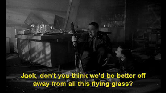 Captain Mandrake: Jack, don't you think we'd be better off away from all this flying glass?