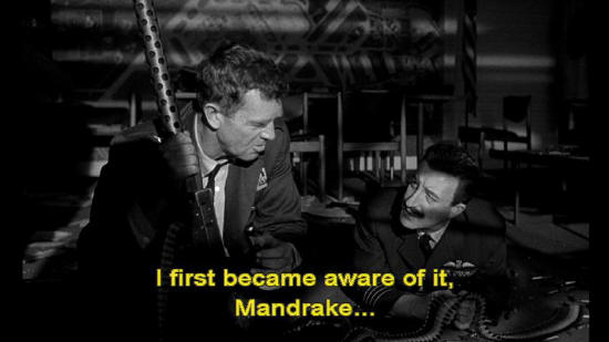 General Jack Ripper: Well, I ... I first became aware of it, Mandrake ... ... during the physical act of love.