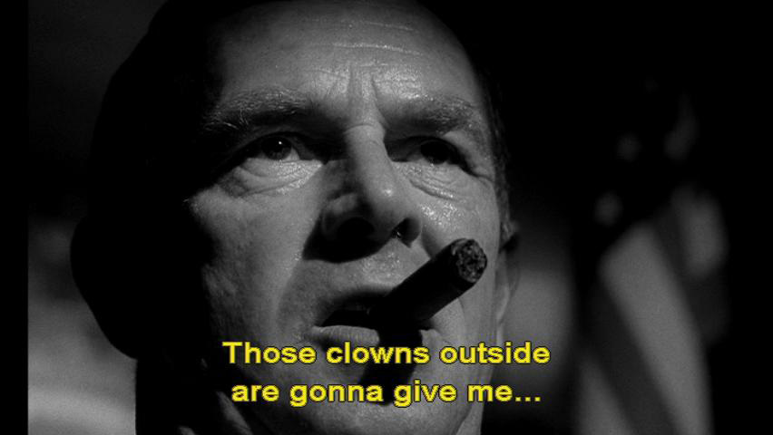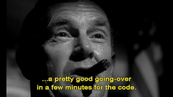 The strange thing is they make such bloody good cameras. General Jack Ripper: Those clowns outside are gonna give me ... ... a pretty good going-over in a few minutes for the code. Captain Mandrake: Yes --