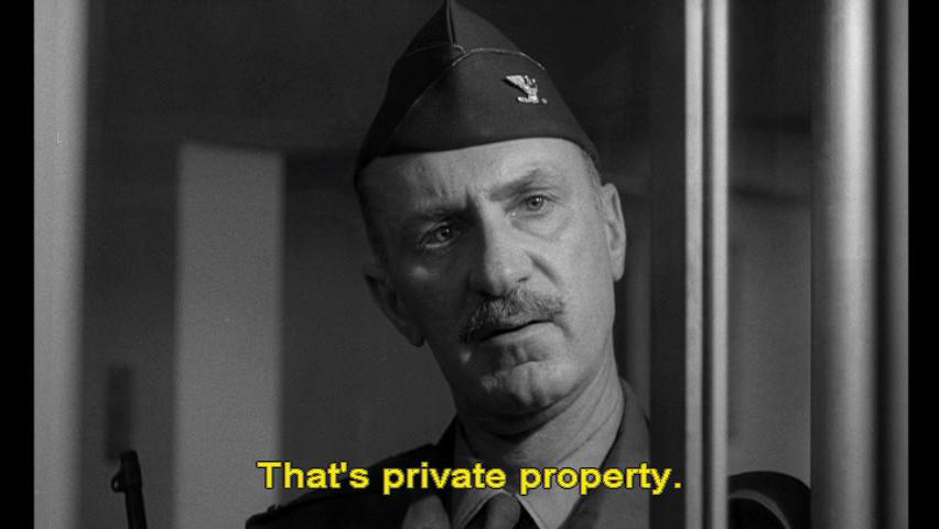 There may be some change in there. Colonel: That's private property. Captain Mandrake: Can you possibly imagine what is gonna happen to you ... ... your frame, outlook, way of life and everything ...