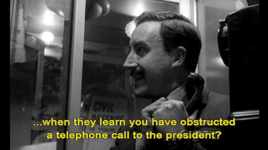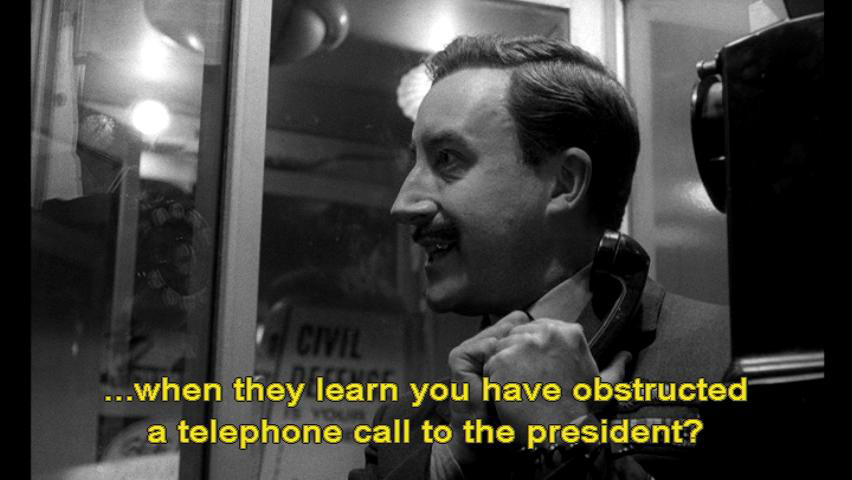when they learn you have obstructed a telephone call to the President? Can you imagine? Shoot it off! Shoot with the gun! That's what the bullets are for, you twit!