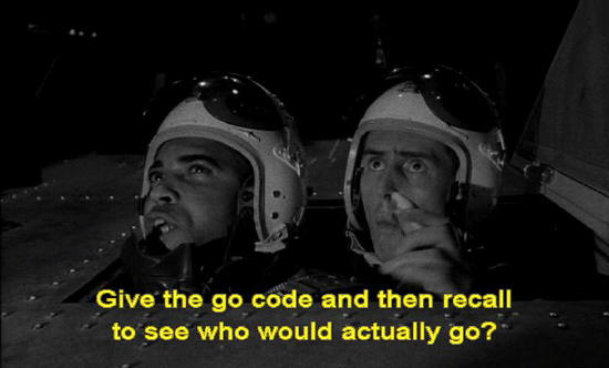 Give the go code and then recall to see who would actually go? Major Kong: Ain't nobody ever got the go code yet. Old Ripper wouldn't be giving us Plan R ... ... unless them Russkies had clobbered Washington ...