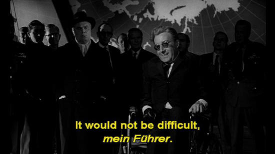 Dr. Strangelove: It would not be difficult, mein Fuhrer. Nuclear reactors could -- I'm sorry, Mr. President. Nuclear reactors could provide power almost indefinitely.
