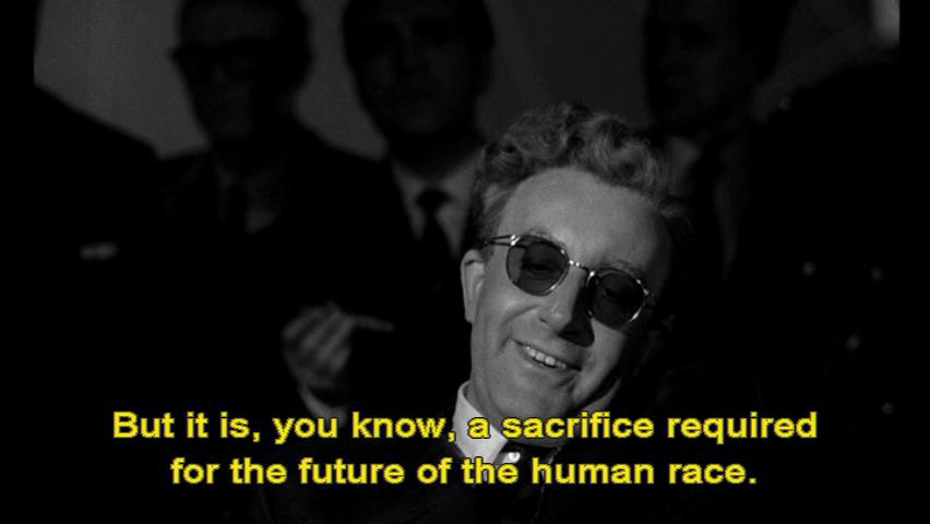 But it is, you know, a sacrifice required for the future of the human race. I hasten to add that since each man will be required to do prodigious ... ... service along these lines ...