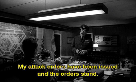 General Jack Ripper: Group captain, the planes are not gonna be recalled. My attack orders have been issued and the orders stand. Captain Mandrake: If you'll excuse me saying so, sir, that would be, to my way of thinking ... ... rather an odd way of looking at it.