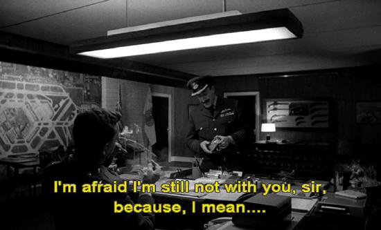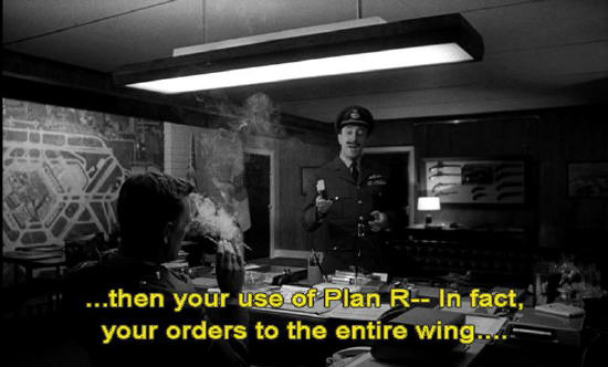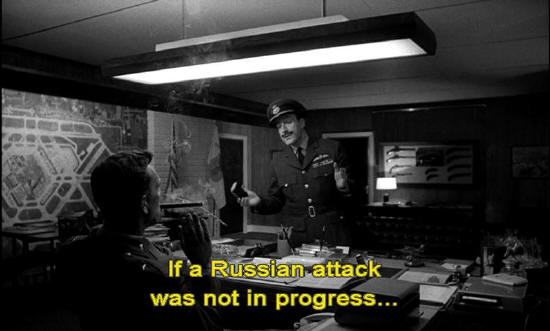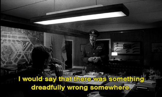 Captain Mandrake: I'm afraid I'm still not with you, sir, because, I mean ... if a Russian attack was not in progress ... ... then your use of Plan R -- in fact, your orders to the entire wing ... I would say that there was something dreadfully wrong somewhere.