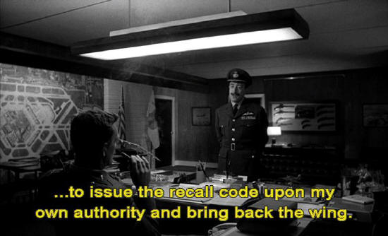... it is my clear duty under the present circumstances ... ... to issue the recall code upon my own authority and bring back the wing. If you'll excuse me, sir. Sir, I must ask you for the key and the recall code. Have you got them handy?
