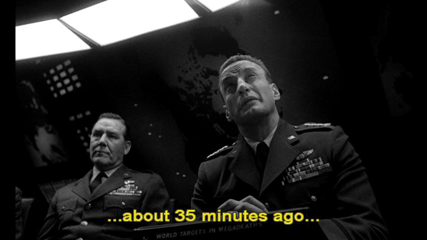 President: Right. Now, General Turgidson, what's going on here? General Turgidson: Mr. President ... ... about 35 minutes ago ... ... General Jack Ripper, the commanding general ...